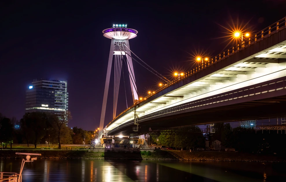 Ναι, σωστά διαβάσατε. Όποιος βρεθεί στην πρωτεύουσα της Σλοβακίας, θα εντυπωσιαστεί με τον εύστοχα ονομασμένο, ύψους 95 μέτρων πύργο UFO, ο οποίος από το 1972 αγναντεύει από ψηλά τον ποταμό Δούναβη. Ακριβώς απέναντι από την ιστορική Παλιά Πόλη της Μπρατισλάβα, η πανοραμική βεράντα του στον τελευταίο όροφο και το εστιατόριό του προσφέρουν την καλύτερη θέα στην πόλη και τη γύρω περιοχή. Είναι αξιοσημείωτο ότι η απόκοσμη αισθητική αυτού του πύργου δεν είναι τόσο ασυνήθιστη σε μια πόλη που κάποτε αποτέλεσε πεδίο δοκιμών για μερικά από τα πιο τολμηρά αρχιτεκτονικά έργα.