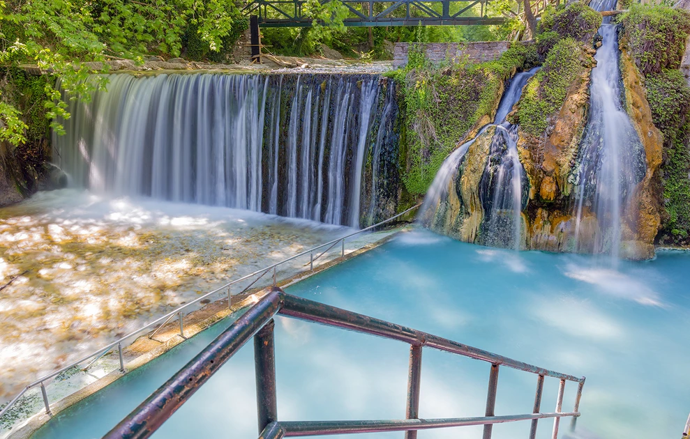 Το σκηνικό στα Λουτρά Πόζαρ είναι εκπληκτικό με τους φυσικούς καταρράκτες που σχηματίζονται κατά μήκος του ποταμού με τα ιαματικά νερά και τις φυσικές «πισίνες» να προσκαλούν σε βουτιές αναζωογόνησης και ευεξίας.