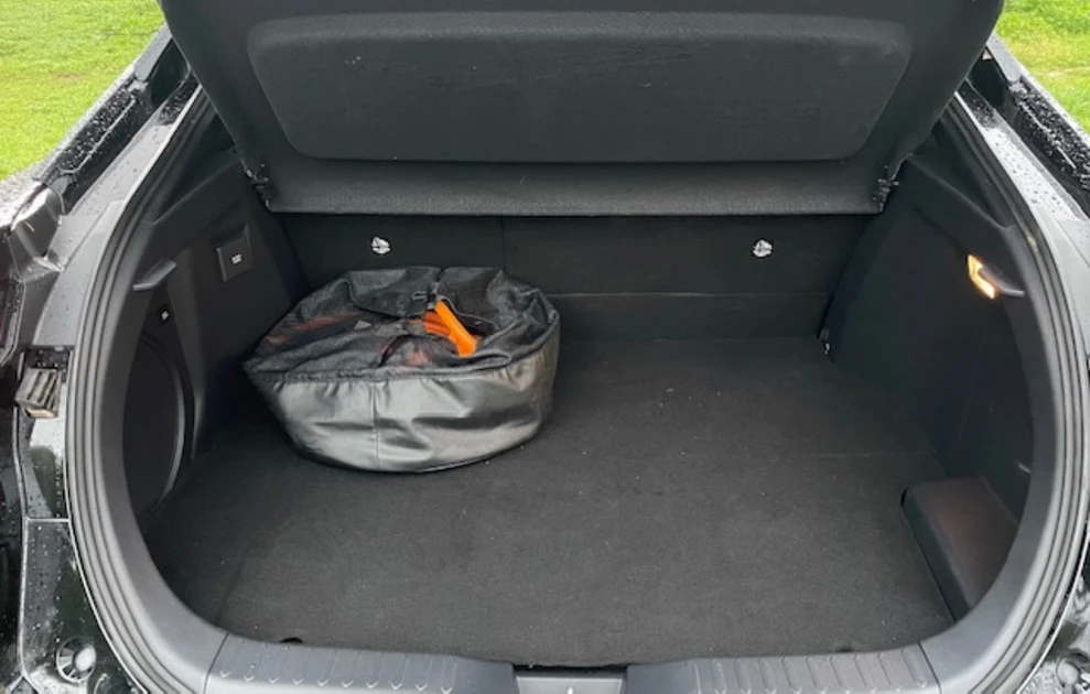 Εννοείται ότι, ο περιορισμένος χώρος για τους πίσω επιβάτες, η κλειστοφοβική αίσθηση για τους ίδιους και η περιορισμένη ορατότητα πίσω για τον οδηγό, παραμένουν. Μικρότερος είναι και ο χώρος αποσκευών, όχι γιατί προστέθηκε (η απαραίτητη στην Ελλάδα) ρεζέρβα, αλλά γιατί υπάρχει και η τσάντα με το καλώδιο φόρτισης.