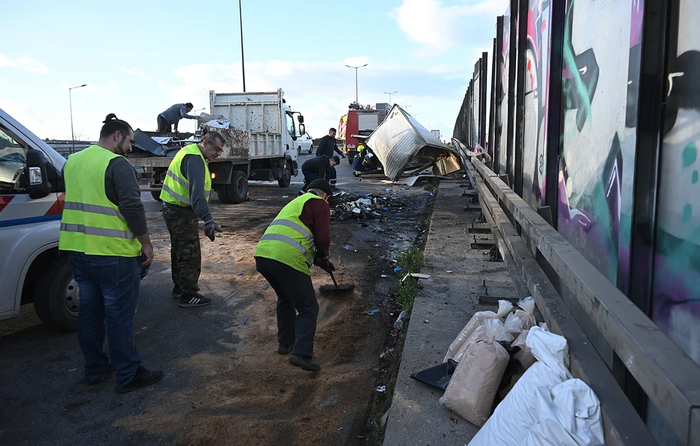 Η κίνηση προς Πειραιά στην περιοχή του Αιγάλεω για αρκετή ώρα διεξαγόταν με πολύ χαμηλές ταχύτητες, μέχρι την απομάκρυνση των οχημάτων. Το περιστατικό έγινε όταν, υπό άγνωστες συνθήκες, φορτηγό που βρισκόταν στο ρεύμα προς Λαμία, στο ύψος της Ιεράς Οδού, έσπασε τις μπάρες, πέρασε στο αντίθετο ρεύμα και έπεσε σε άλλο φορτηγό.